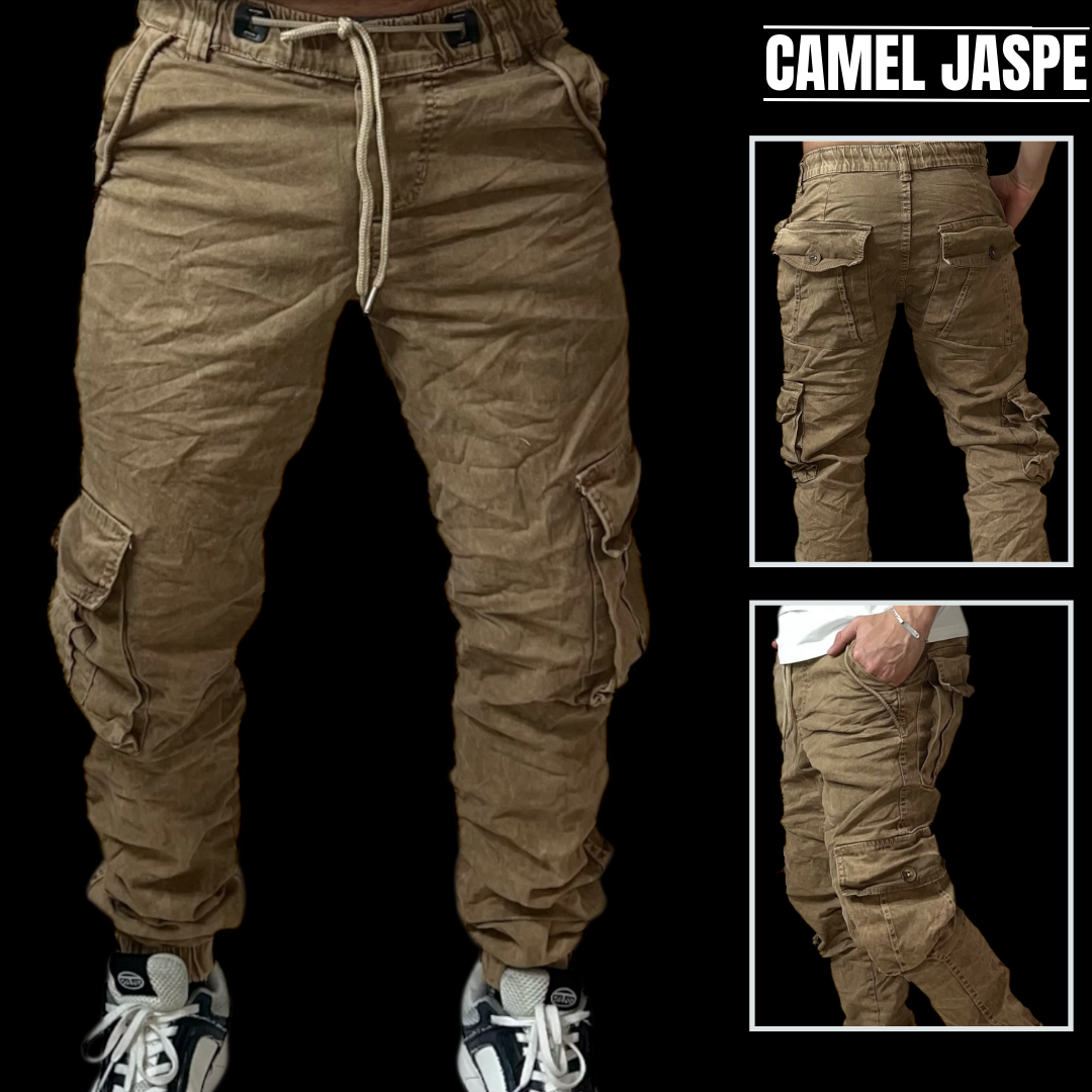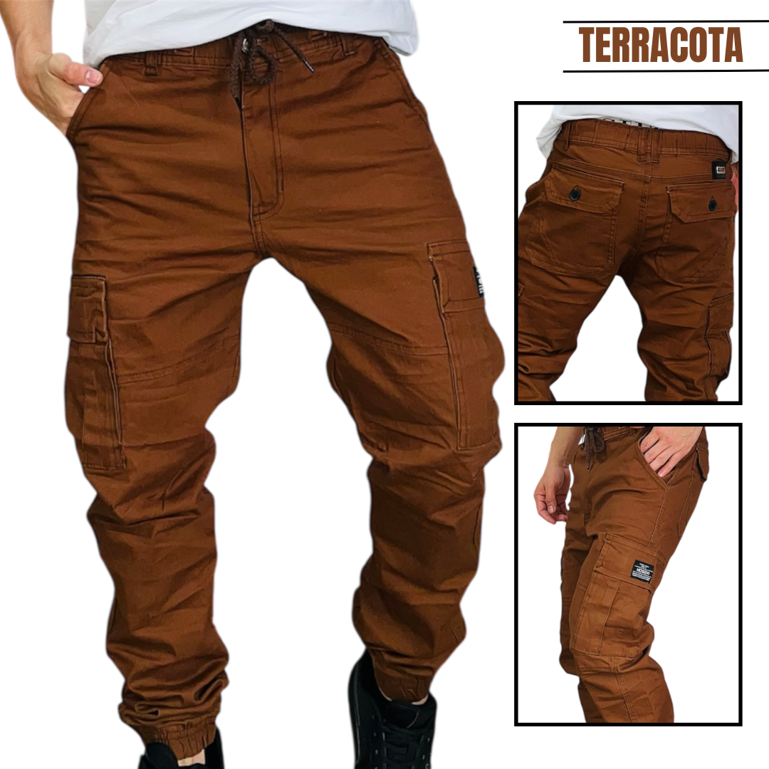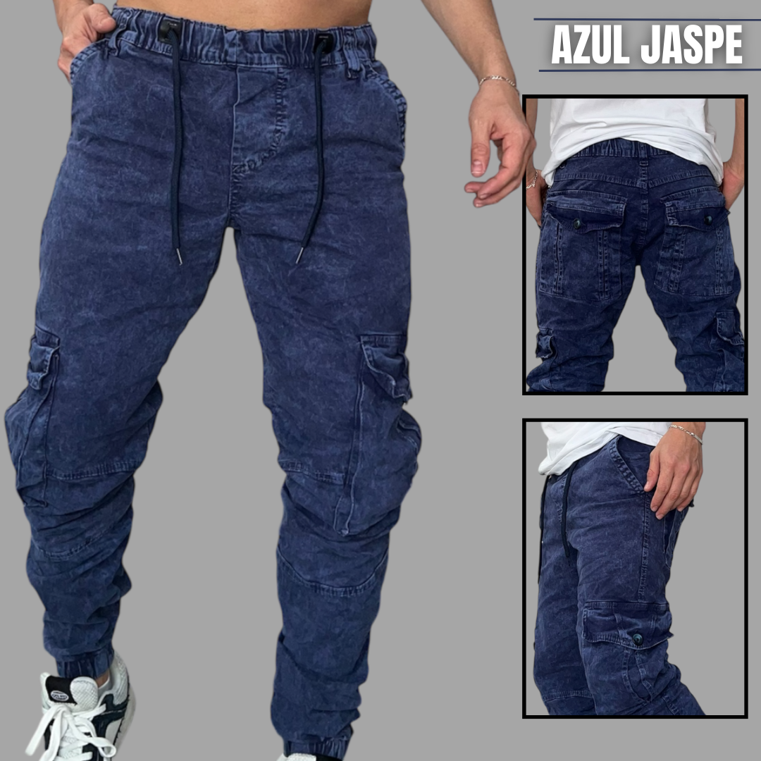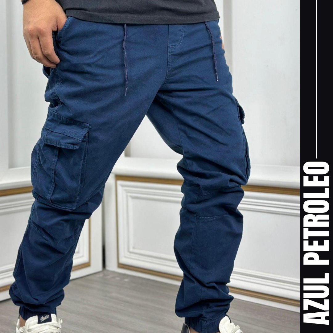 Dril camuflado tipo jogger para caballero , trae 2 bolsillos traseros , 2 bolsillos laterales, bolsillo a ambos lados a nivel de la rodilla, bota resortada.