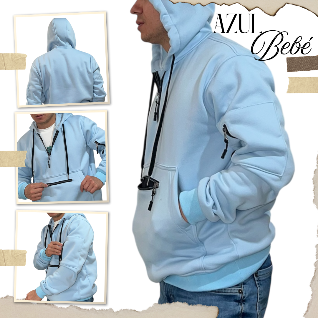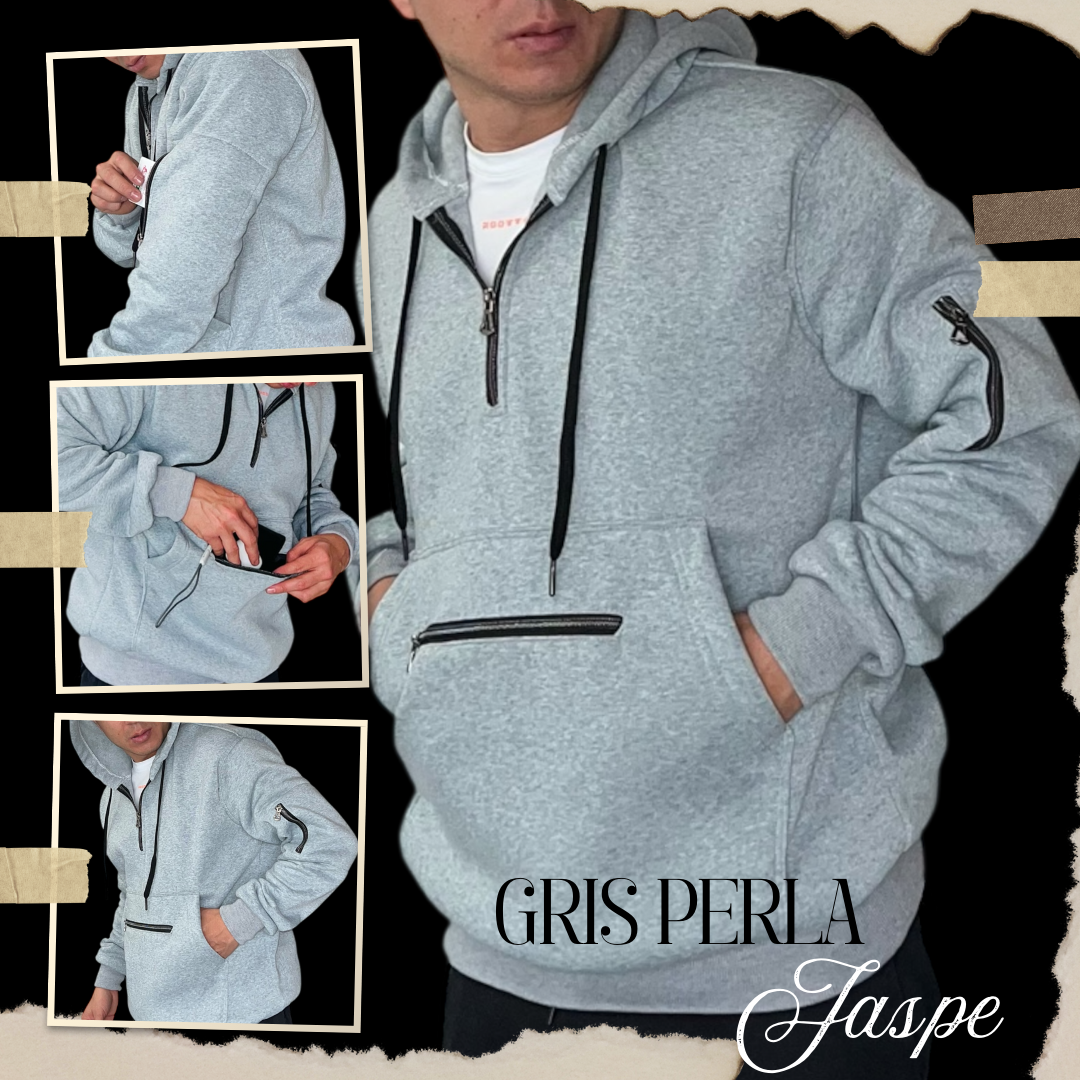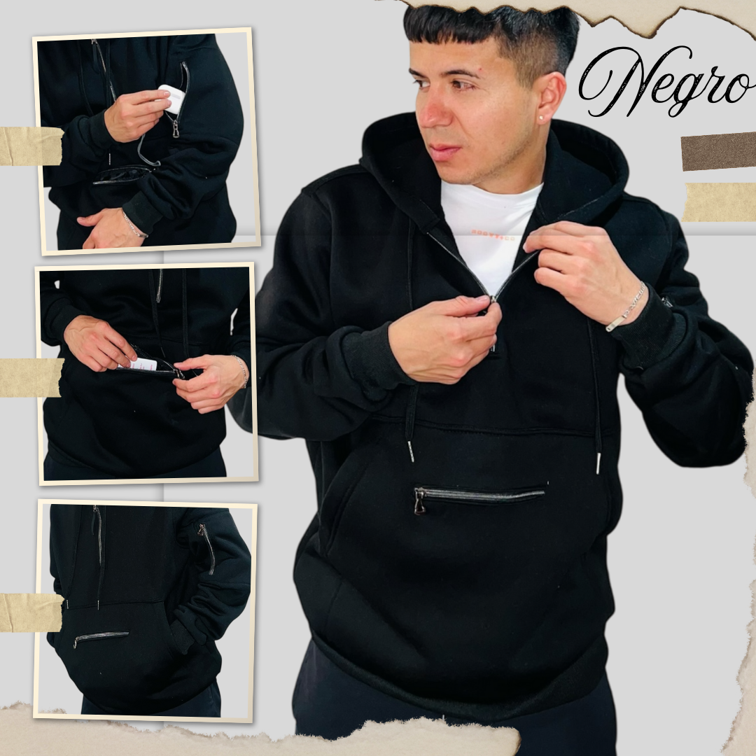 ✔️ Bolsillo frontal tipo canguro con cremallera de seguridad.
