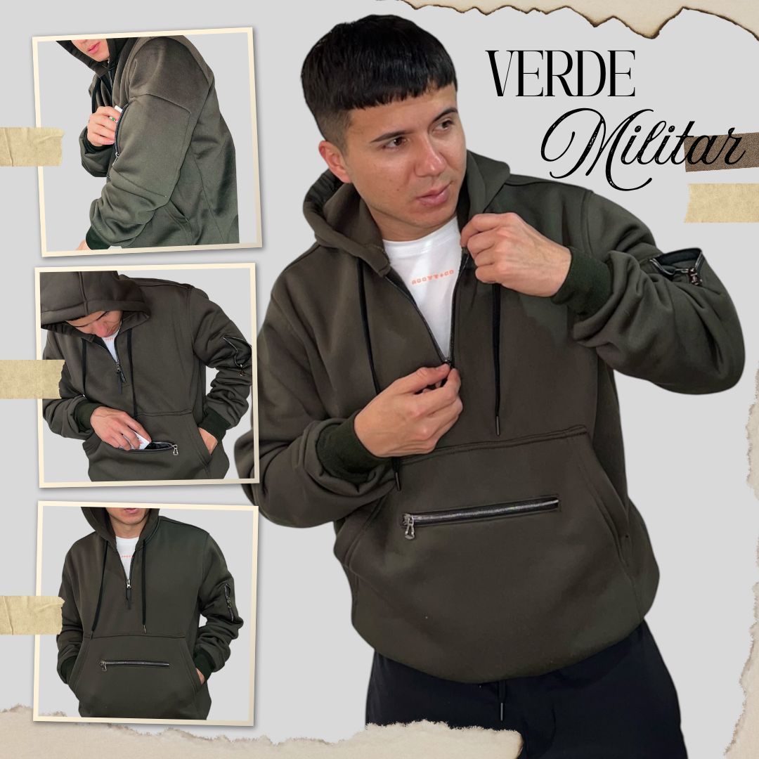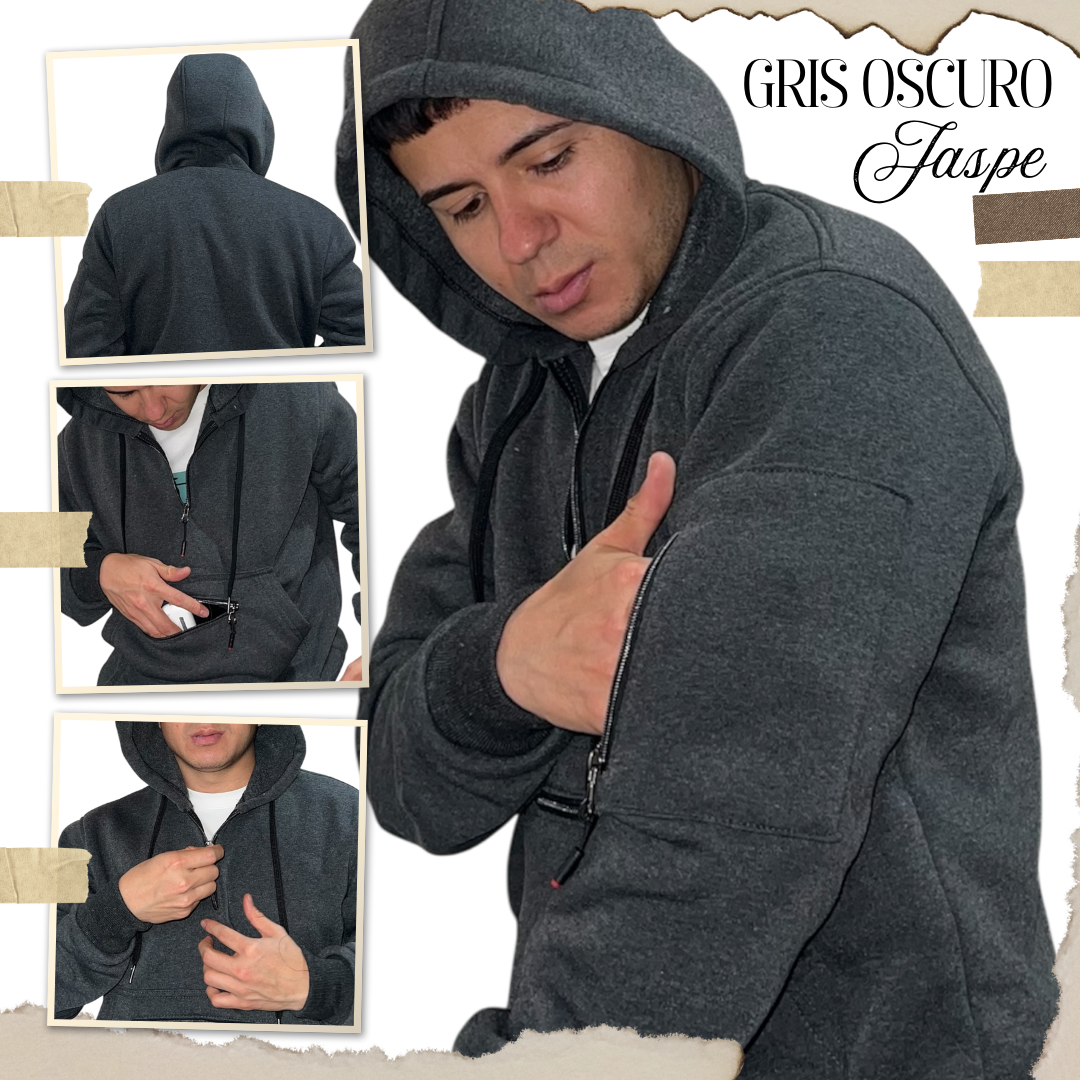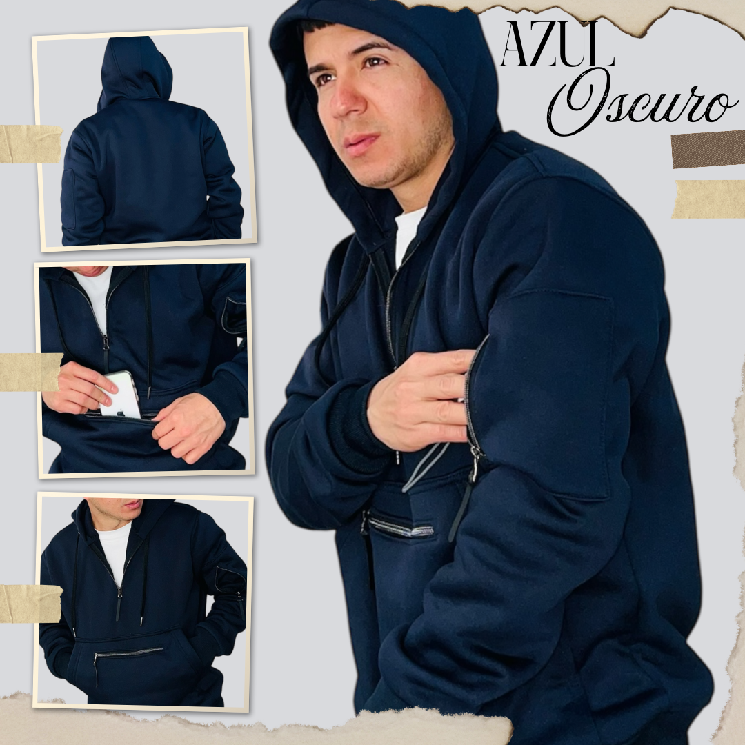 ✔️ Bolsillo frontal tipo canguro con cremallera de seguridad.